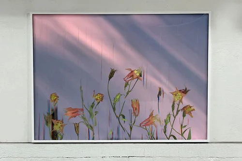 The video depicts queer artists and activists frolicking with wigs and sometimes struggling to stay upright in the tide on Riis Beach, a queer and BIPOC beach in NYC. It is projected through a tank containing saltwater, causing the light to refract and rainbow and the image to split into three color channels. The sound is made from gritty recordings captured of waves underneath the sand and a ship’s distress signal-meant to forewarn of something unknown that is to come.